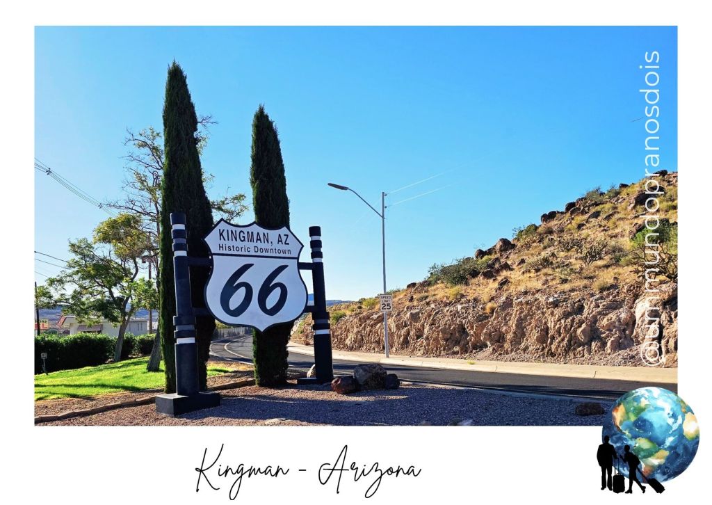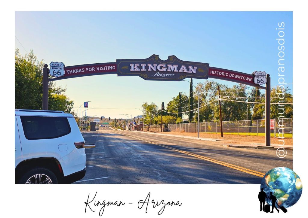 Saindo da Represa, seguimos por aproximadamente 120 km até Kingman, no Arizona, conhecida como “o coração” da histórica U.S. Route 66.