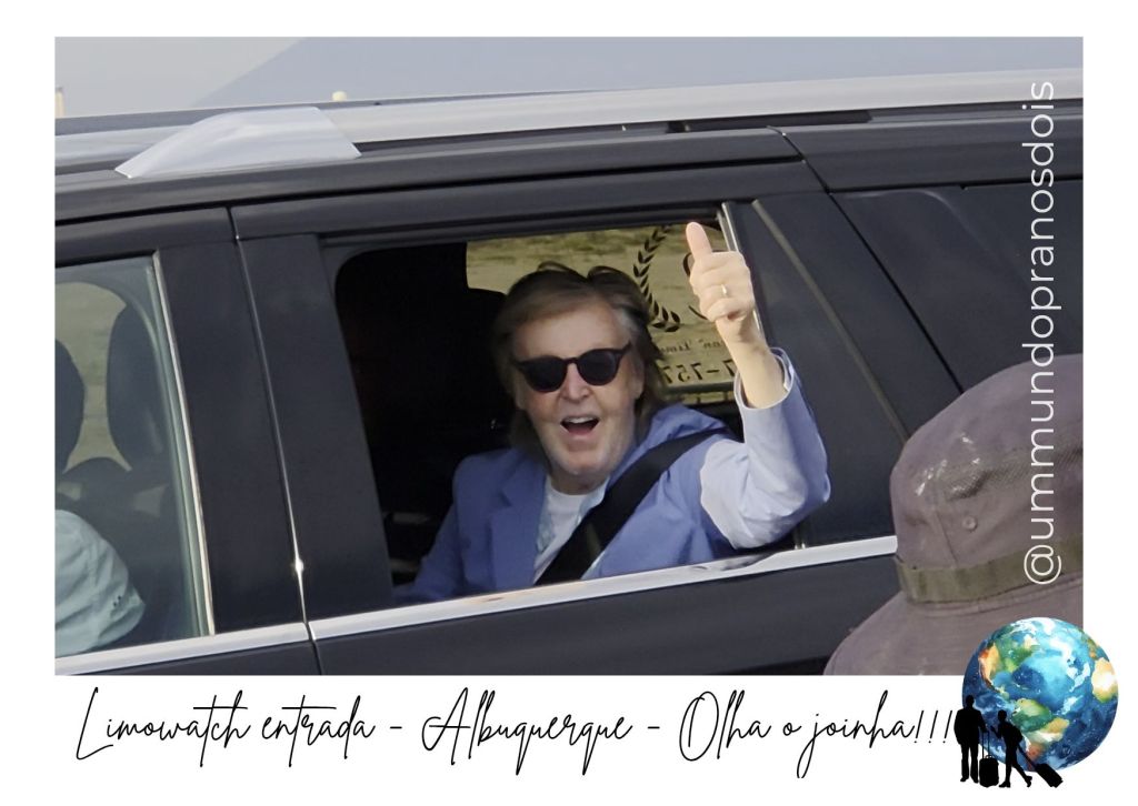 E foi muito engraçado porque eu acho que o Paul tá começando a notar nossa presença… Quando estávamos esperando na chegada, o segurança não parava de nos olhar, tipo, de novo esse casal com a bandeira do Brasil aqui… E quando o Paul chegou, tenho certeza que ele fez um joinha quando me viu com a bandeira.
