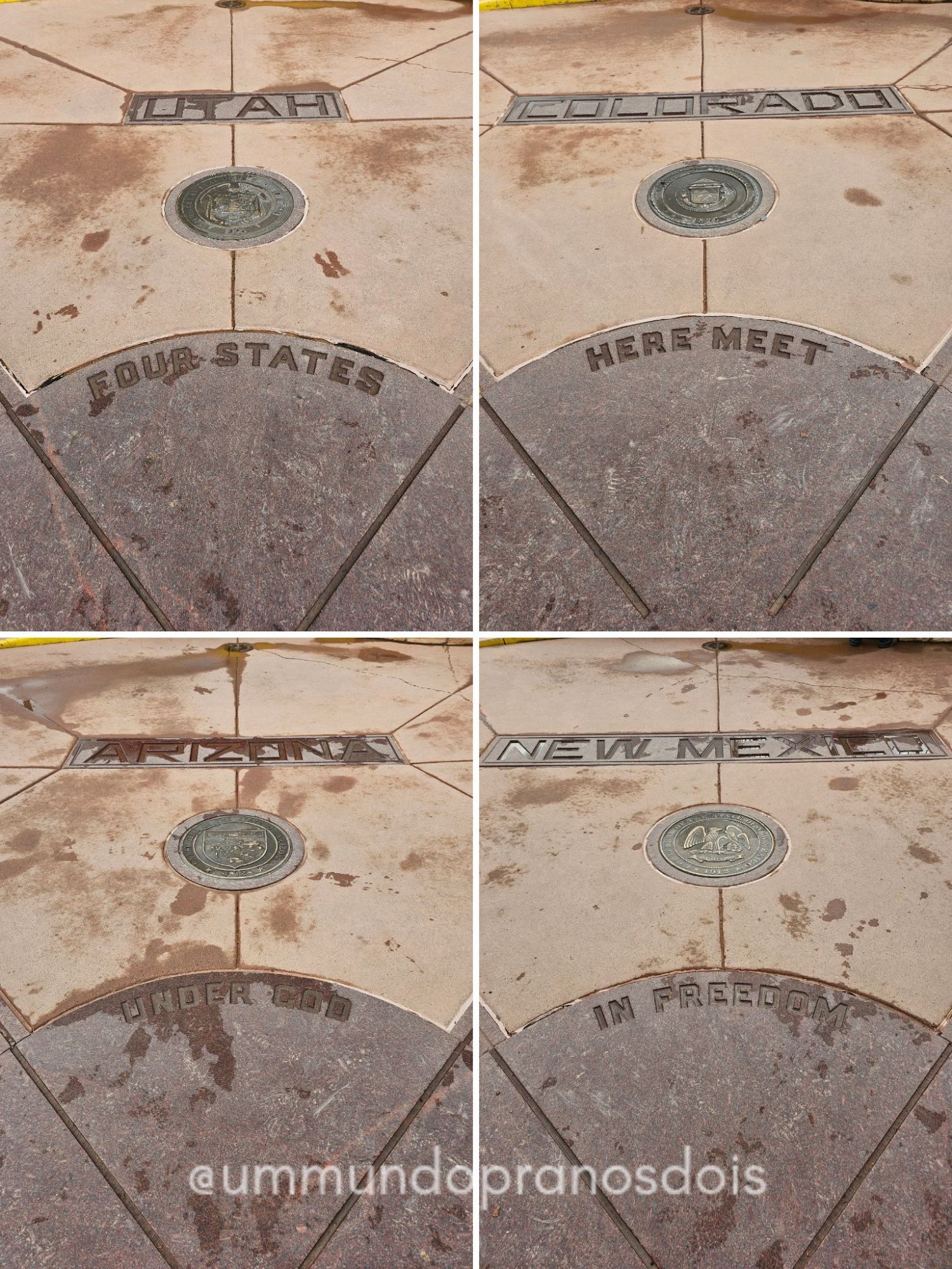 Novo México, Arizona, Utah e Colorado compartilham esse monumento, que é mantido pelo Departamento de Parques e Recreação da Nação Navajo. É legal, mas é só uma marcação de fronteira… e ao redor tem umas banquinhas onde o povo Navajo vende souvenirs e artesanato.