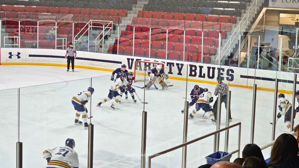 Mas aí veio o meu irmão com um link de ingresso para a liga universitária! Grande ideia!!! E por 10% do valor original, tivemos a chance de assistir um “hockey game”. Foi legal e diferente, mas no terceiro set a novidade já tinha passado e já estava entediada. Não sou mesmo dos esportes…